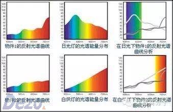 一方面,每一種著色劑反射和吸收的關(guān)系是確定的,并且取決于光源波長。另一方面,每一種光源顯示了它們特定的光譜。對(duì)日光和人工光源詳細(xì)測(cè)試證明,兩者波譜和強(qiáng)度上存在相當(dāng)大的差異,正是這些差異造成了同色異譜現(xiàn)象。