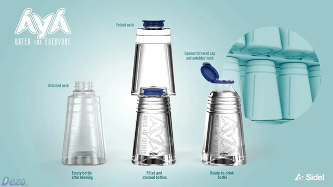 榮獲2020“最佳飲料包裝設(shè)計(jì)”桂冠的西得樂AYA概念瓶就配有卡扣式連體瓶蓋,可以進(jìn)一步減少塑料污染。AYA是一款220毫升PET包裝瓶,瓶身呈V形,其目標(biāo)瓶重僅5克,超輕的重量可以從源頭上減少原材料的用量,此包裝瓶由100% rPET材料的瓶坯吹制而成,讓回收的舊瓶重獲新生,真正實(shí)現(xiàn)循環(huán)利用。